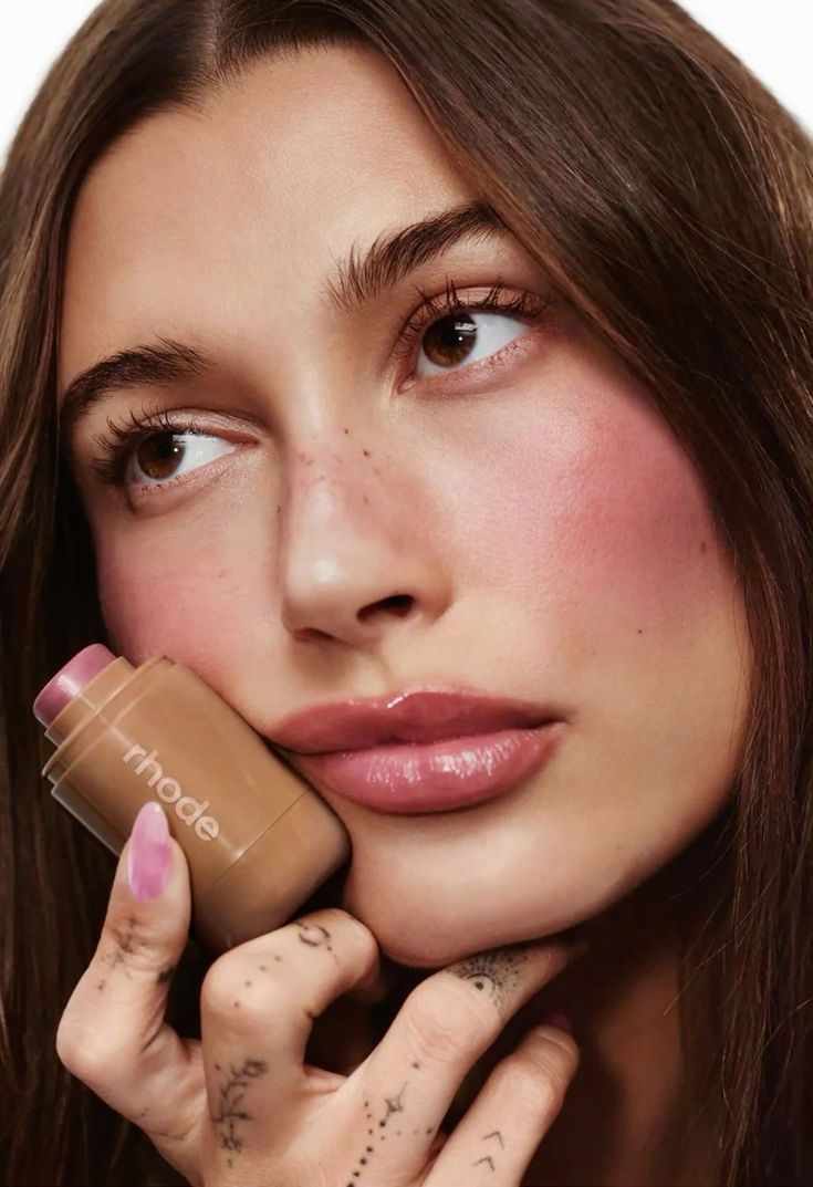 The brand sits inside a visual and cultural universe: “clean girl energy,” hydrating glowy textures, soft neutral tones, effortless beauty routines, and Hailey Bieber’s own public aesthetic.